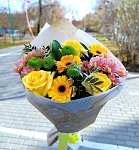 Доставка с поздравлением. Наш курьер торжественно вручит букет от вашего имени и зачтет ваше поздравление. Пожалуйста, уточните стоимость этой услуги у менеджера по телефону.